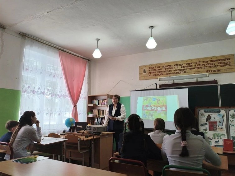 Биологическая игра "Эти удивительные животные" (учитель Шебанова А.А). Участники игры-обучающие 5-7 классов. Цель: привлечь внимание детей к наблюдению за животными, формировать умение видеть необычное в привычном, т.е. расширять кругозора, прививать уважительное отношение к природе. Игра проходила в четыре тура. 1 тур. "Самые-самые". Нужно отгадать какому из животных относится тот или иной титул. 2 тур. "Животные в пословицах и поговорках". Нужно вспомнить о какой пословице идёт речь. 3 тур. Ребусы. 4 тур. По картинке узнать животное. Сообщения детей о удивительных животных.