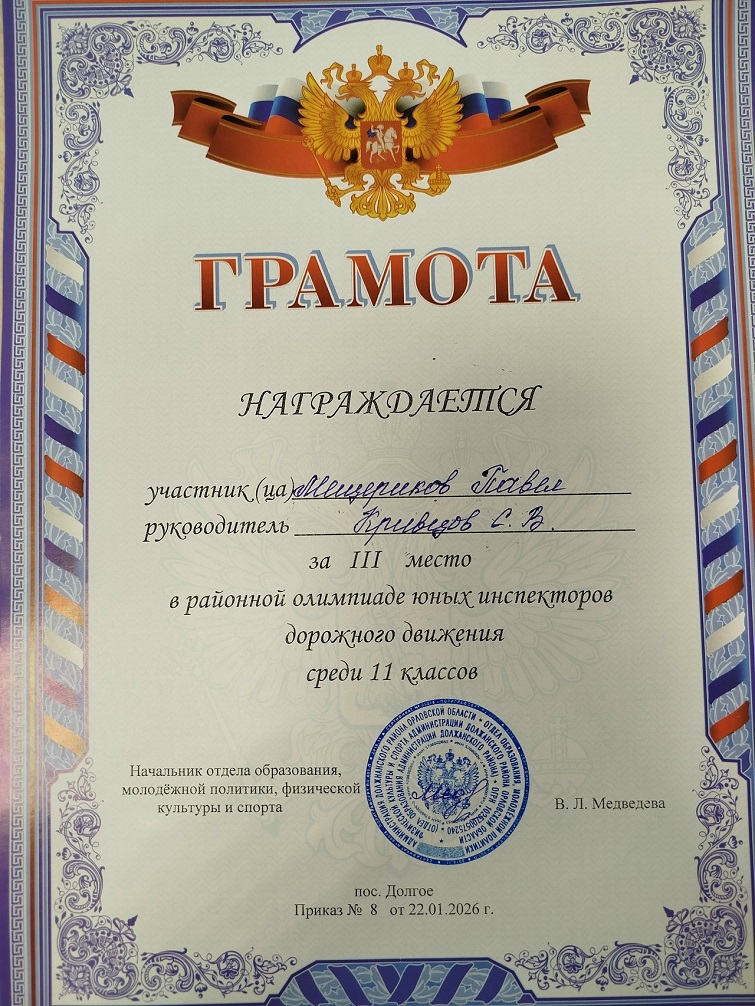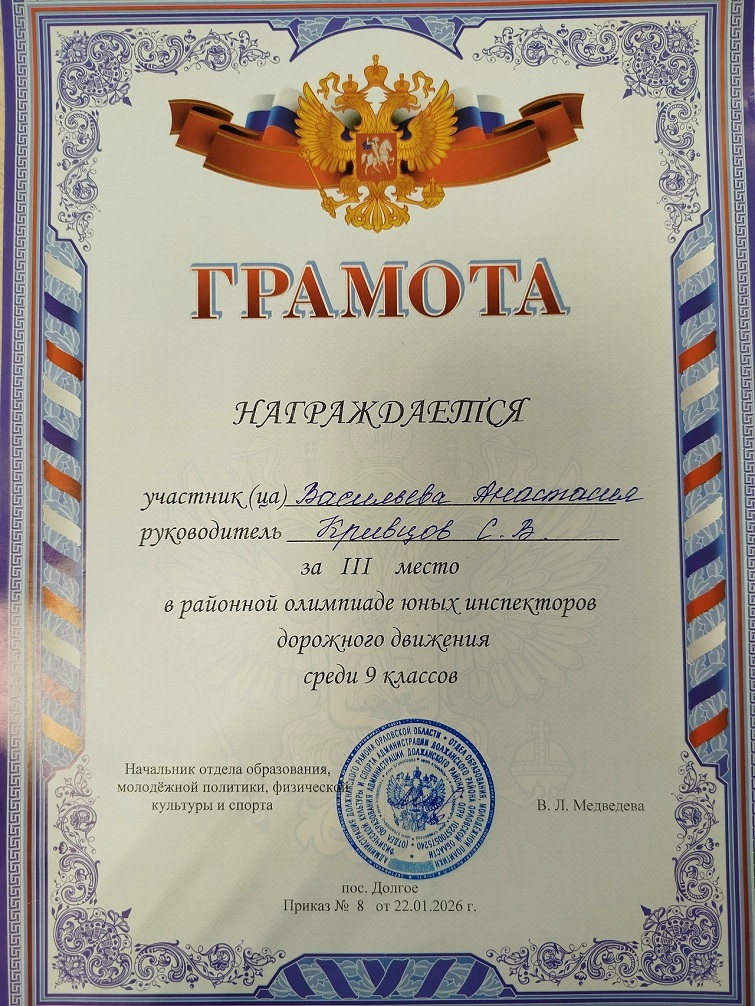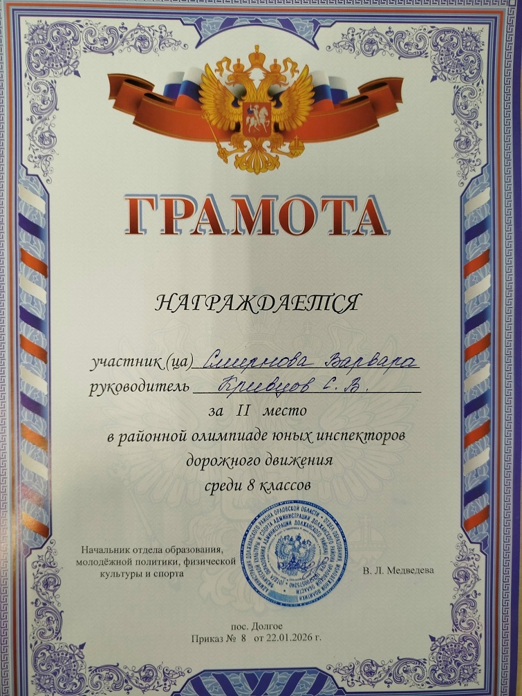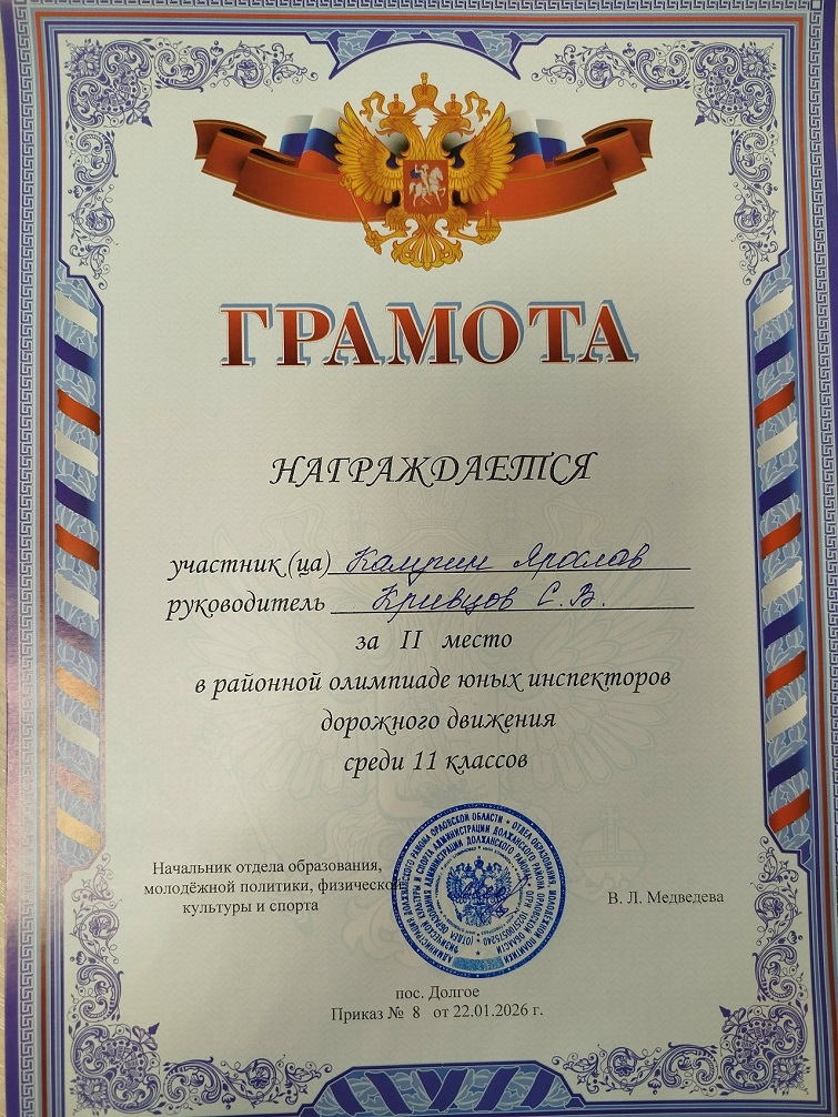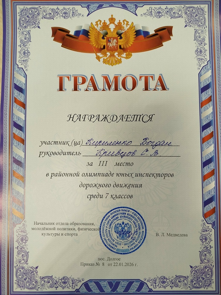22 января 2026 года на базе БОУ «В-Ольшанская сош», прошел муниципальный тур олимпиады юных инспекторов дорожного движения.