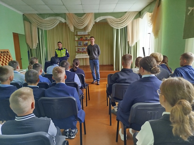 Сегодня в нашей школе проведена беседа по ПДД. Государственный инспектор дорожного надзора отделения Госавтоинспекции ОМВД России по Должанскому району Петров А.А. и стажер по должности инспектора по пропаганде БДД Размологов А.И. провели с обучающимися профилактическую беседу, направленную на предотвращение детского дорожно- транспортного травматизма.