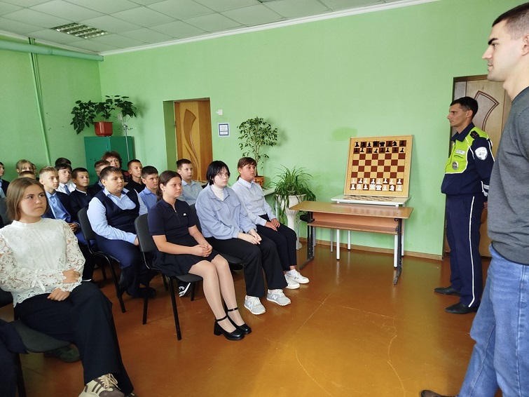 Сотрудники Госавтоинспекции ознакомили школьников со статистикой ДТП с участием детей и обозначили основные причины дорожно- транспортных происшествий. В ходе встречи Петров А.А. и Размологов А.И. рассказали обучающимся о том, как правильно вести себя на дорогах, пешеходных переходах и в общественном транспорте, рассказали о детских удерживающих устройствах для автотранспорта и необходимости их использования, а также о необходимости использования светоотражающих элементов в тёмное время суток.