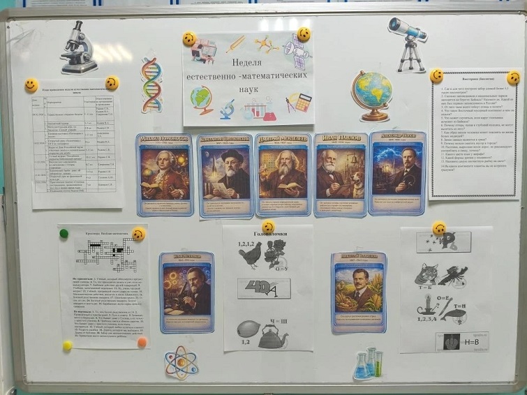 На протяжении всей недели естественно-математического цикла в школе проходил шахматный турнир. В турнире приняли участие более 20 ребят. Все удивили быстротой ума и талантом, умением просчитать ходы, серьёзным отношением к интеллектуальной игре. Каждому игроку нужно было выдержать несколько партий. Игра вызвала большой интерес, всем не терпелось узнать, кто станет победителем.